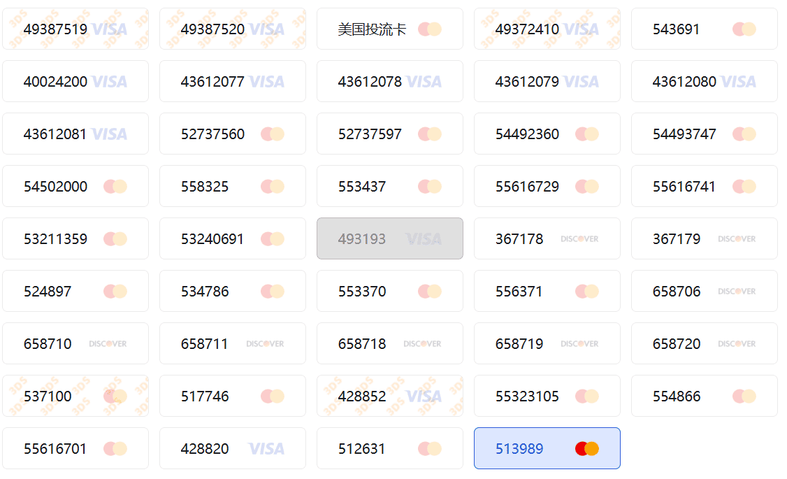 平台支持多种卡段自由选择,卡号丰富,可针对不同用途批量开卡,无月费。充值方式便捷(USDT),通过率稳定,深受跨境广告主和 AI 用户欢迎。